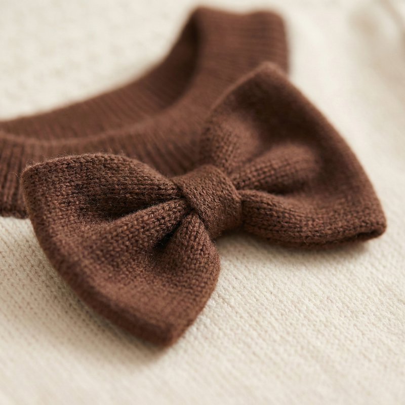 - Modelagem: Corte clássico com detalhes em babados e laço decorativo.