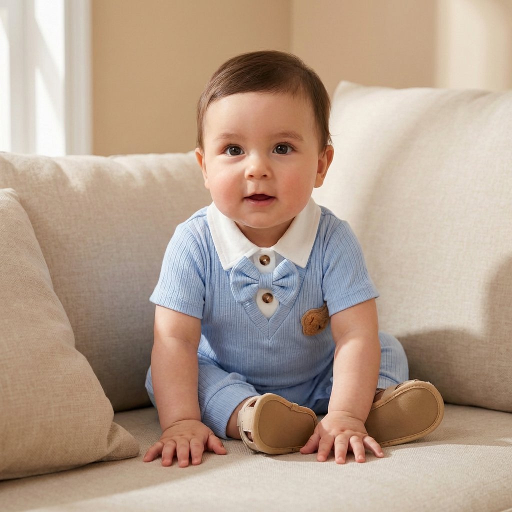 Transforme o visual do seu pequeno em um verdadeiro cavalheiro com nosso Macacão Bebê Menino. Feito com uma mistura suave de poliéster, este macacão é perfeito para os dias quentes de verão, garantindo conforto e estilo.