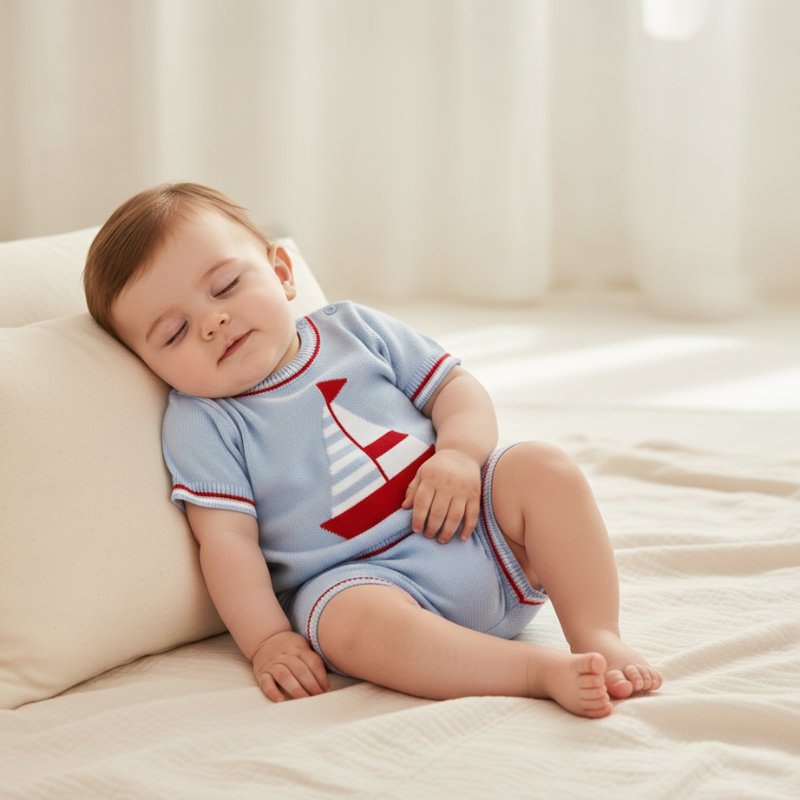 Descubra o charme atemporal deste conjunto vintage para bebês, confeccionado em algodão penteado de alta qualidade. Perfeito para os dias de verão, oferece conforto e estilo em um design clássico.
